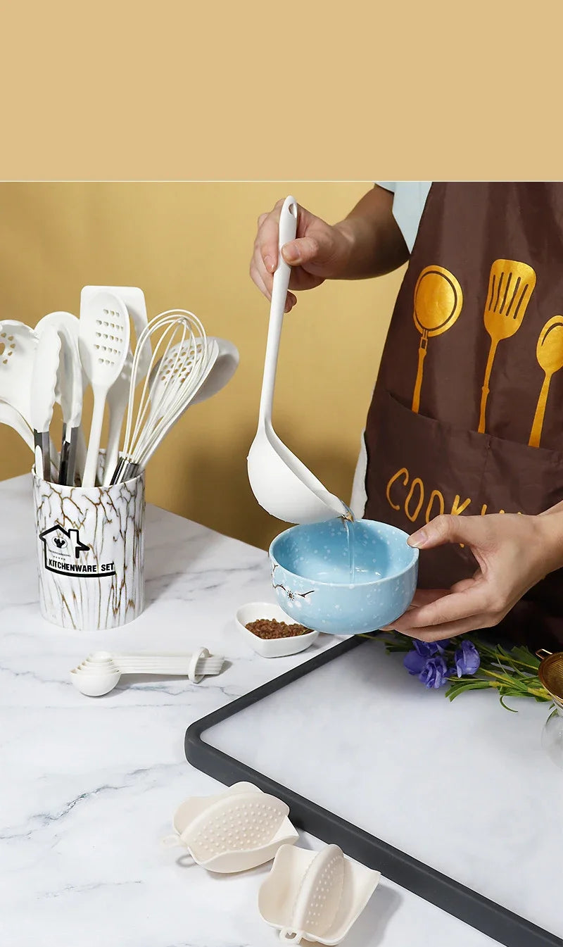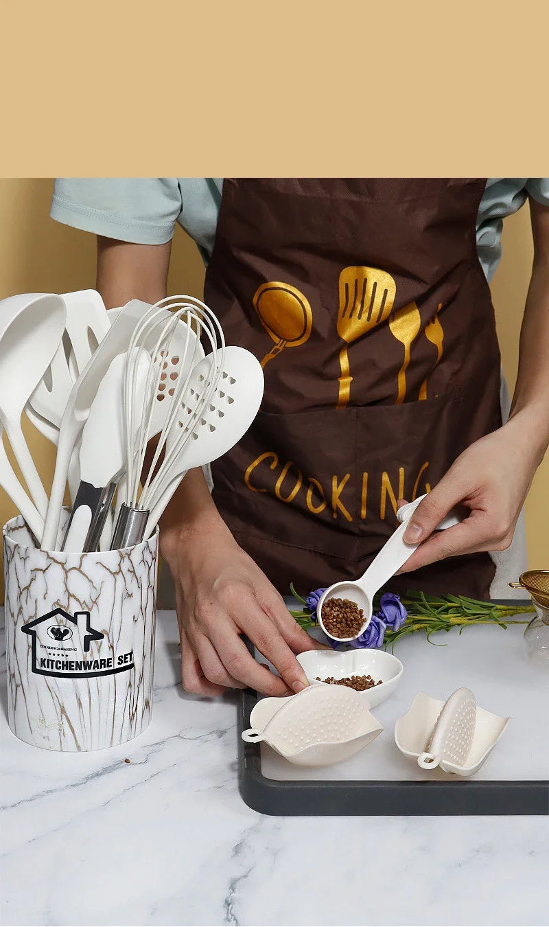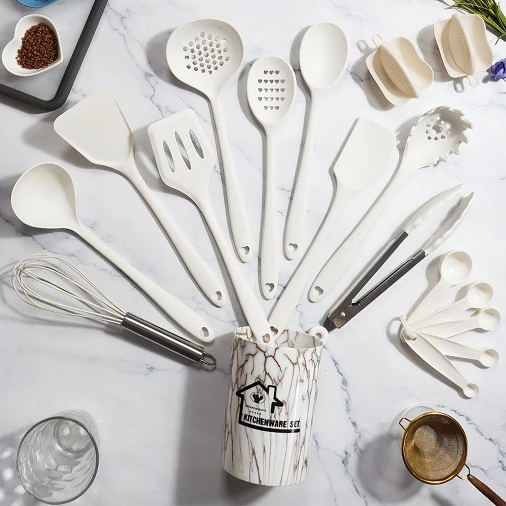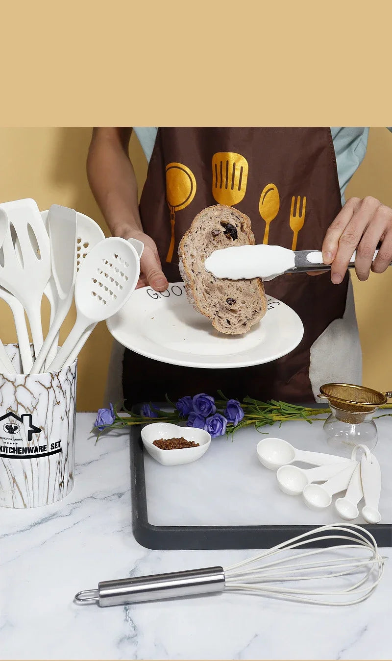 10/18Pcs Silicone Cooking Utensils Sets Pink Non-Stick Baking Tools Kitchenware Spatula Spoon Food Tongs Kitchen Kit with Box